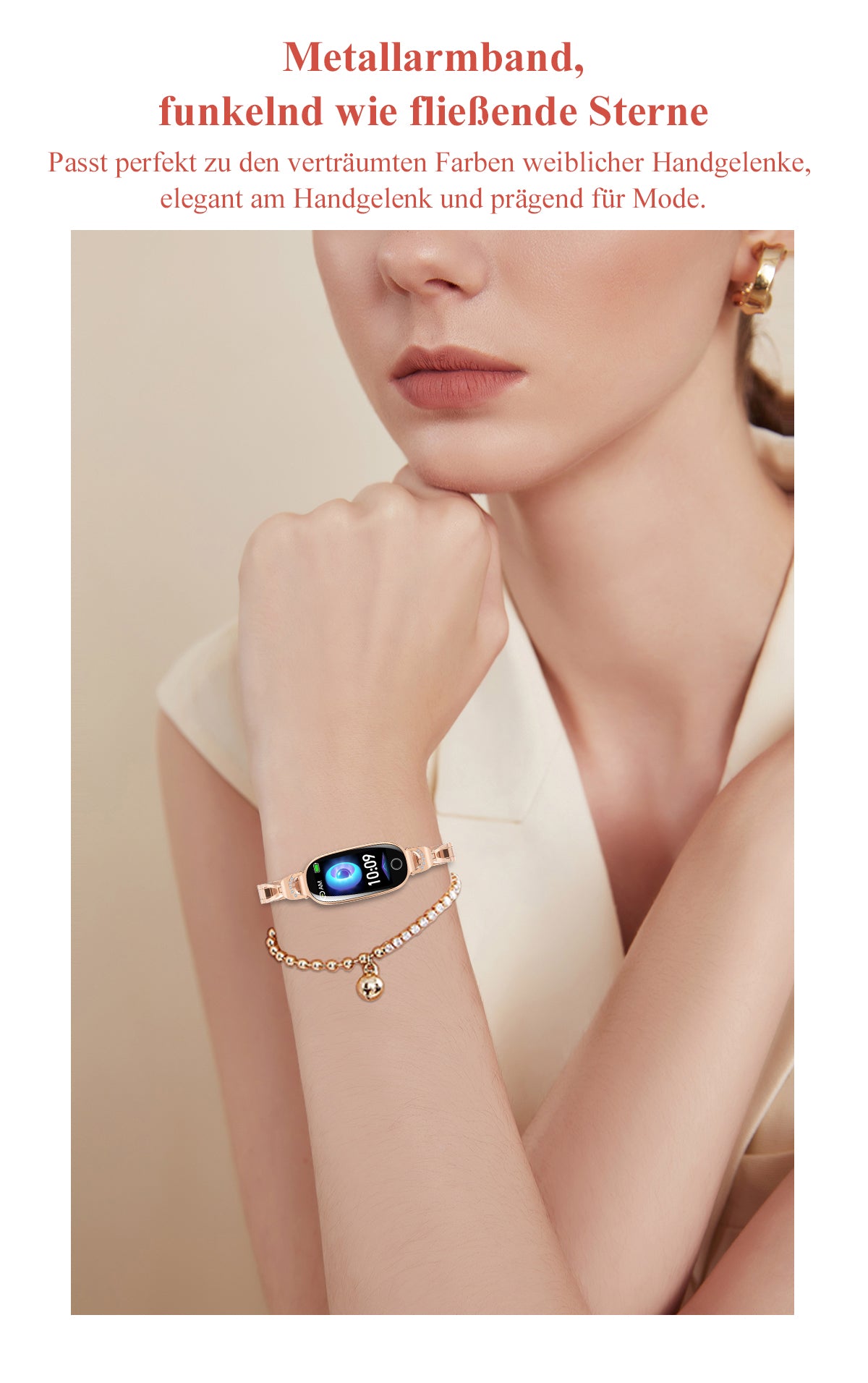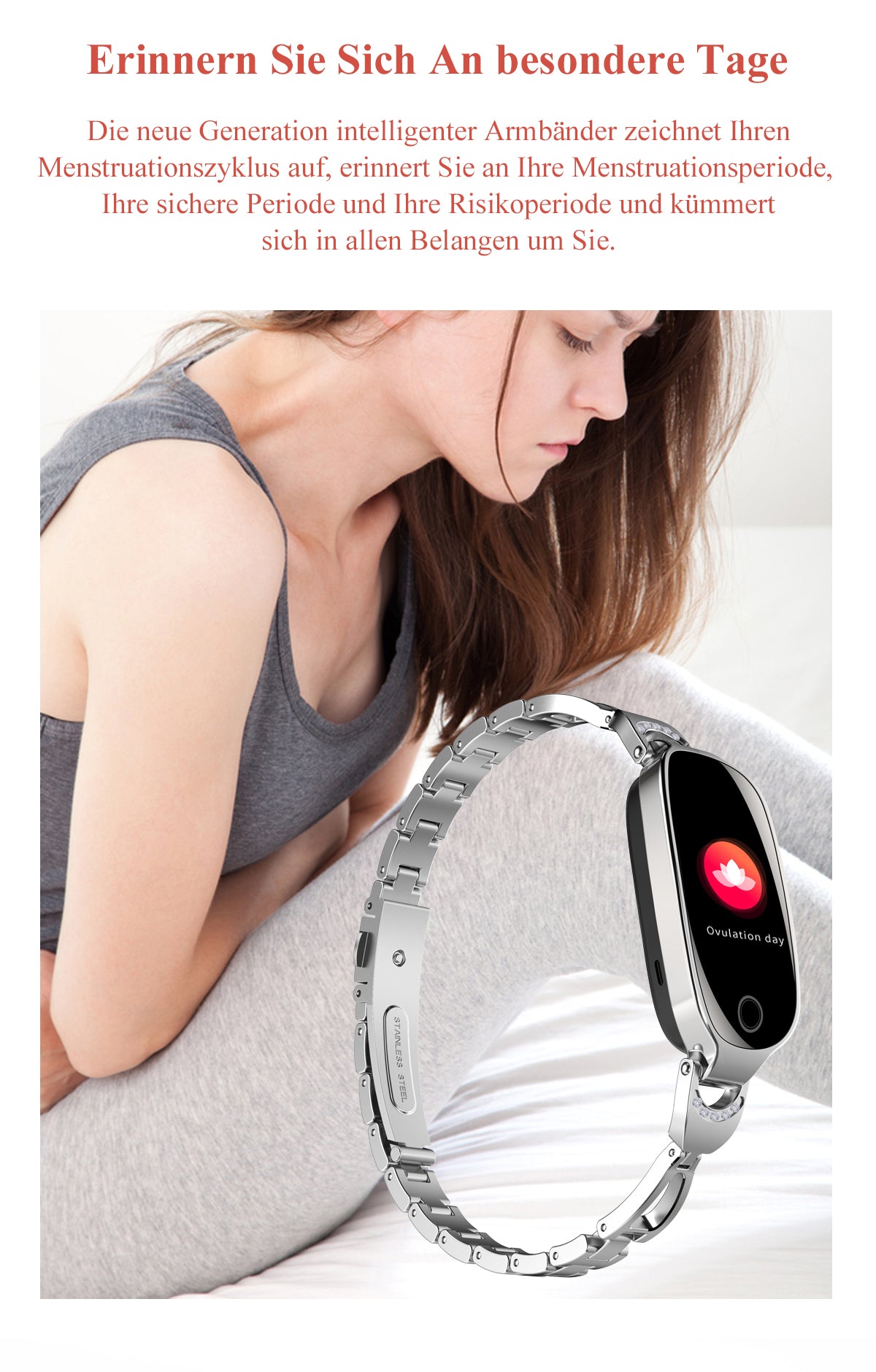 Verwenden Sie das Produkt nicht über längere Zeit in feuchter Umgebung. Die Staub- und Wasserdichtigkeit ist nicht dauerhaft gewährleistet und kann mit der Zeit und durch tägliches Tragen nachlassen. Die Staub- und Wasserbeständigkeit bezieht sich nur auf das Uhrengehäuse. Andere Komponenten (wie Uhrenarmband. Ladestation und Basis) sind nicht im Lieferumfang enthalten.