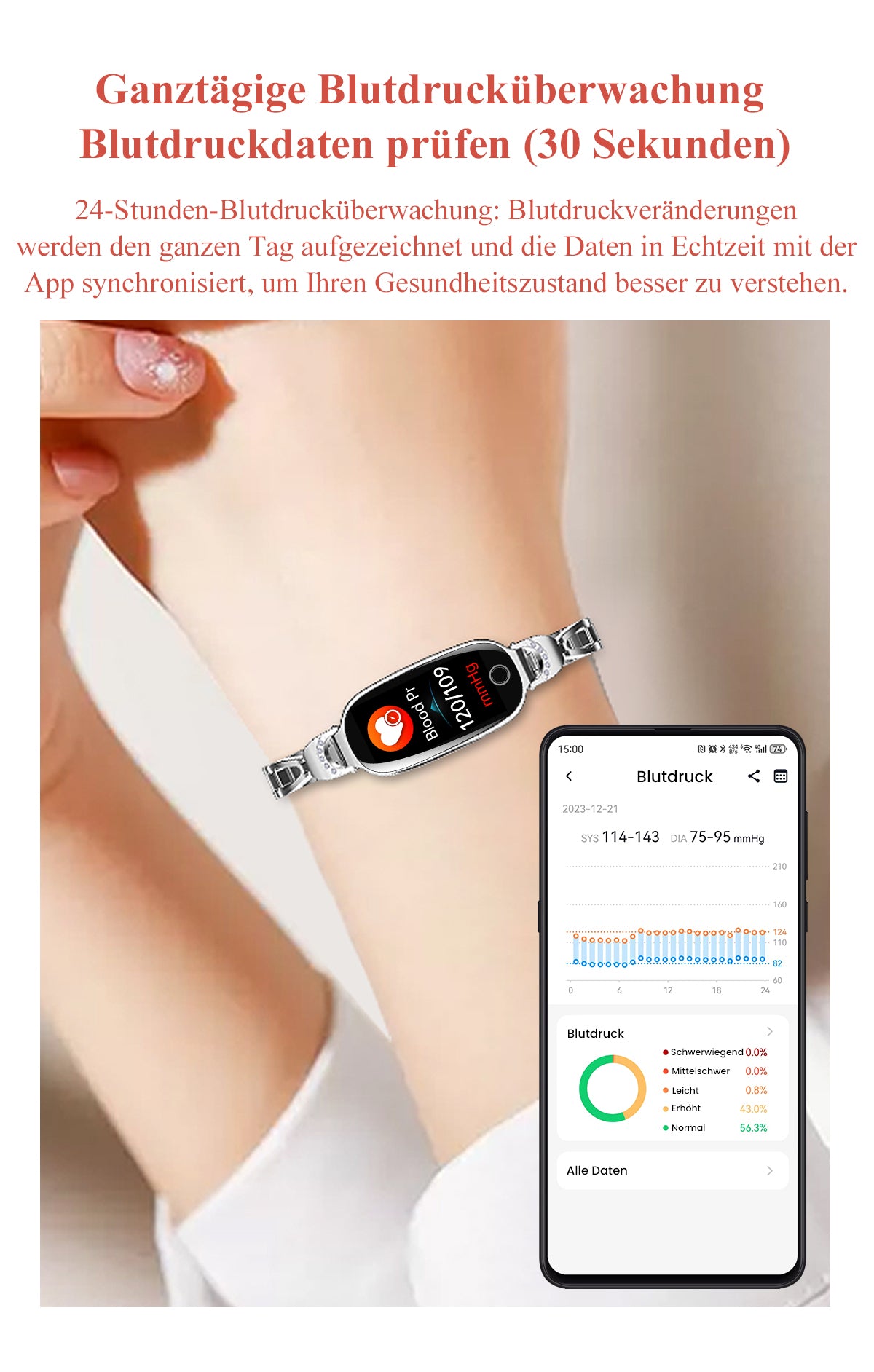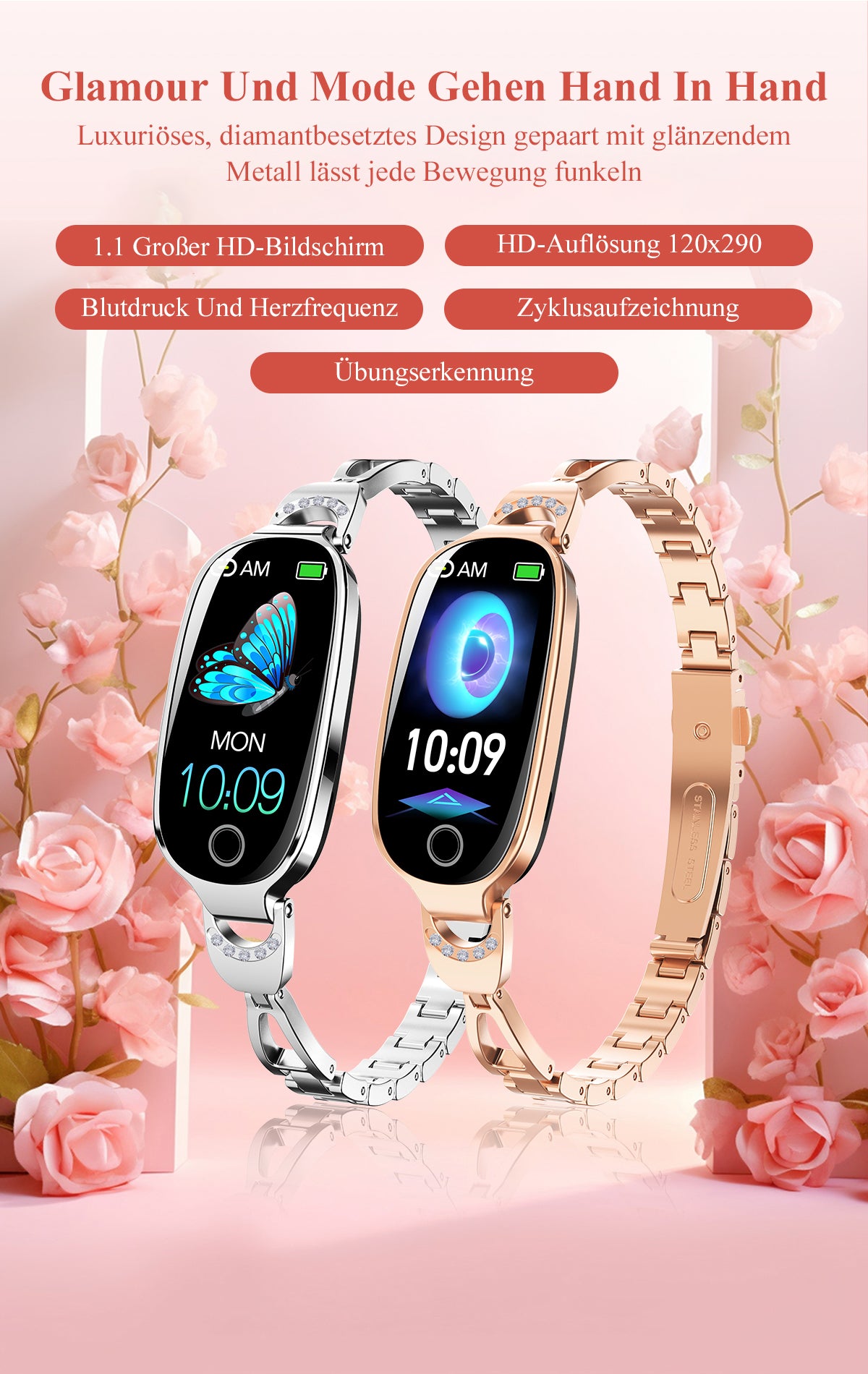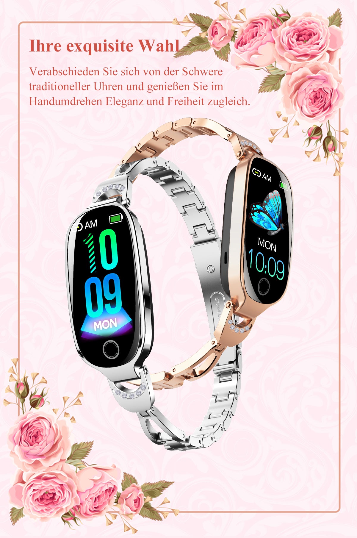 Blutzucker Blutdrucküberwachung Luxus Diamant Design Fashion Smartwatch