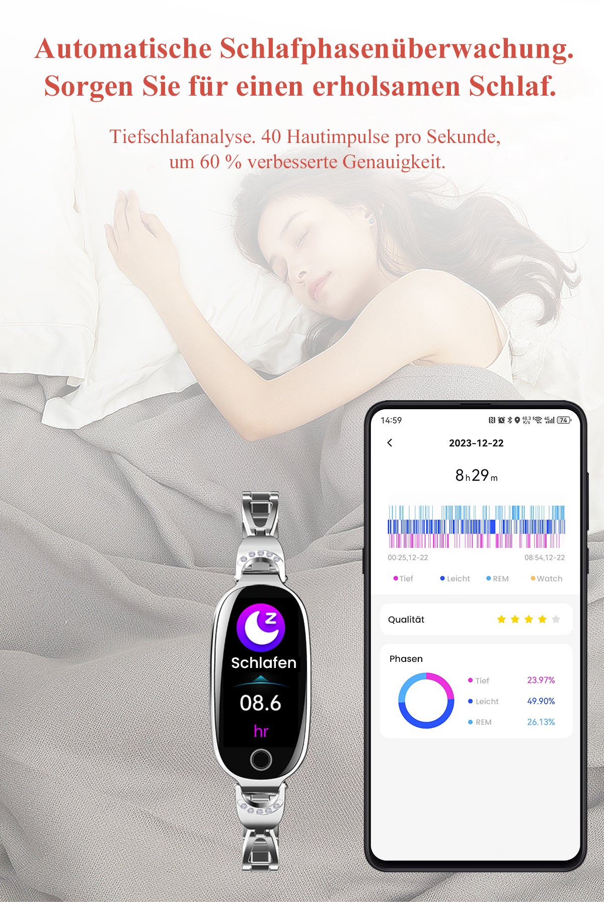 1. Die Überwachungsdaten und -ergebnisse dieses Produkts dienen nur als Referenz und nicht für die Diagnose und medizinische Verwendung. Bitte stellen Sie keine Diagnose und Behandlung anhand der Messergebnisse selbst her.